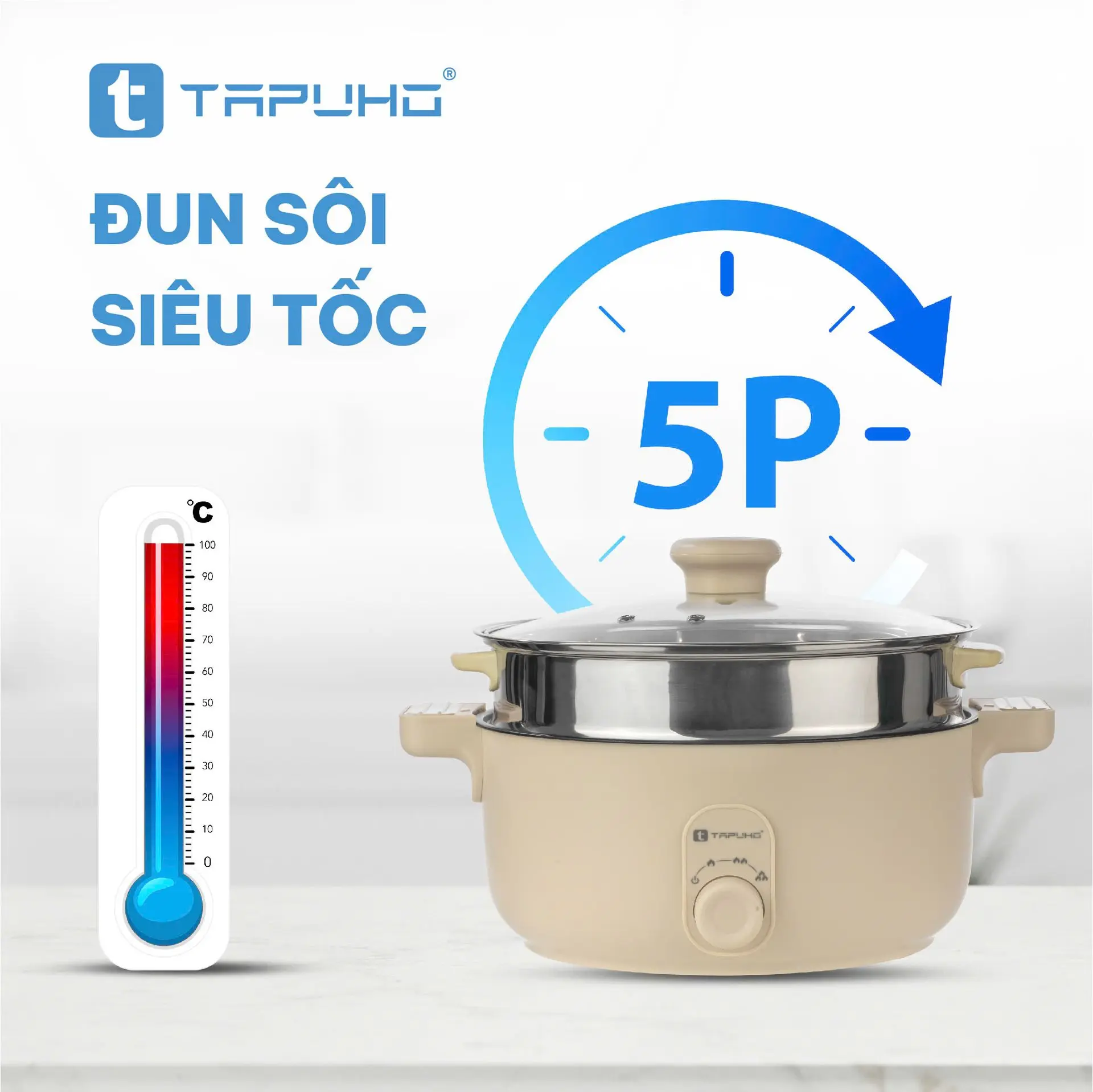 nhanh chỉ trong 3-5 phút. Luồng nhiệt tỏa đi đều từ đáy nồi.